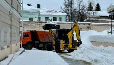 С самого утра на территории Картинной галереи и Губернаторского дома были проведены работы по расчистке снега