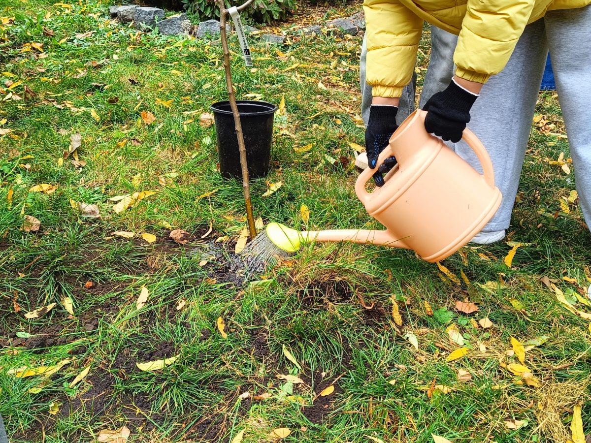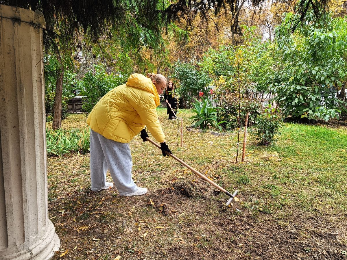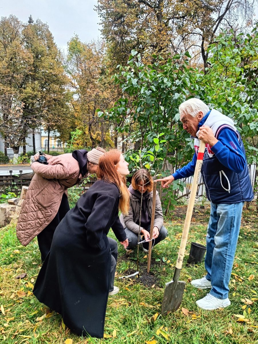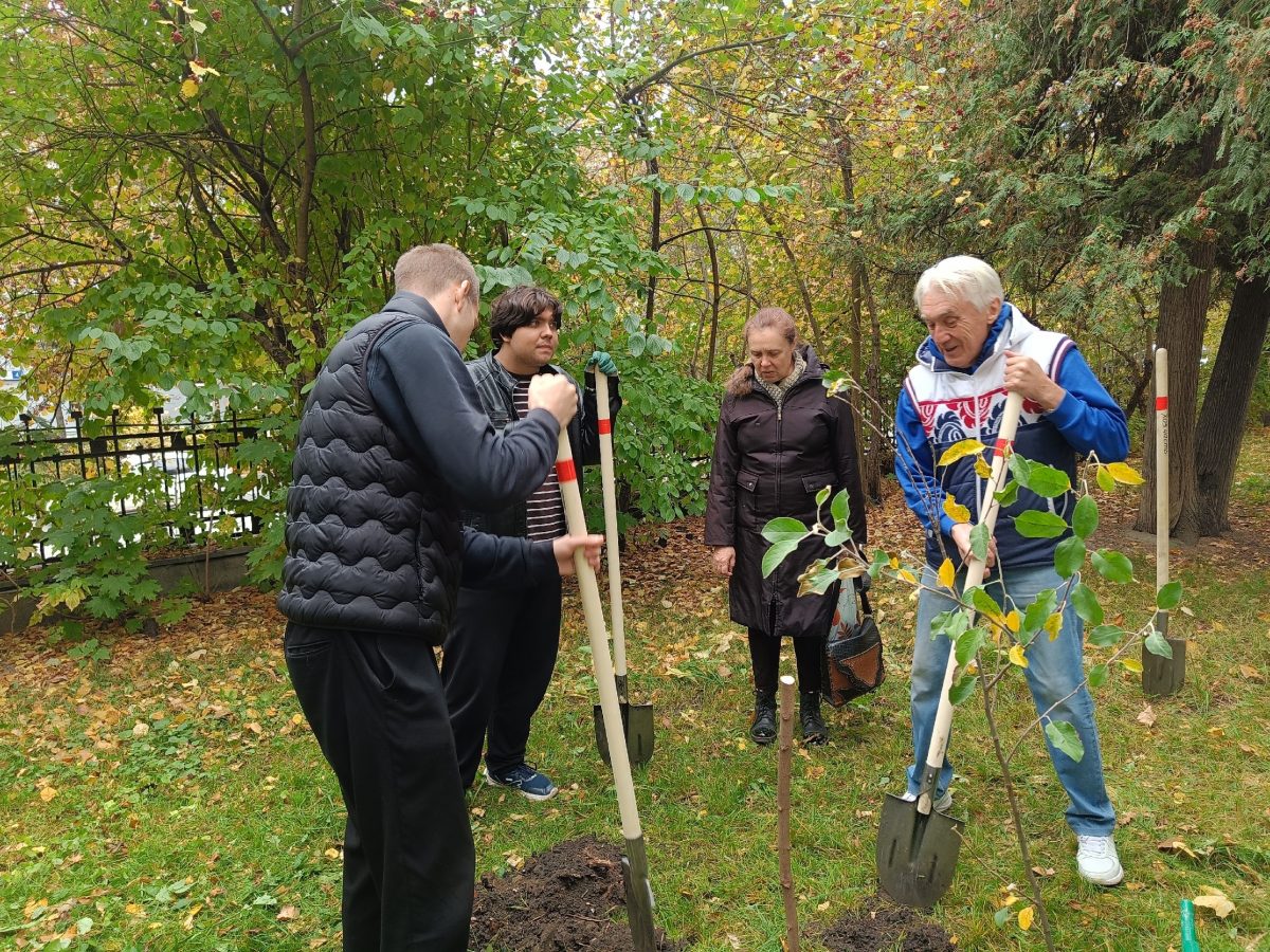 Будущие специалисты не только привели в порядок территорию, убрав осеннюю листву, но и высадили 5 саженцев яблонь!