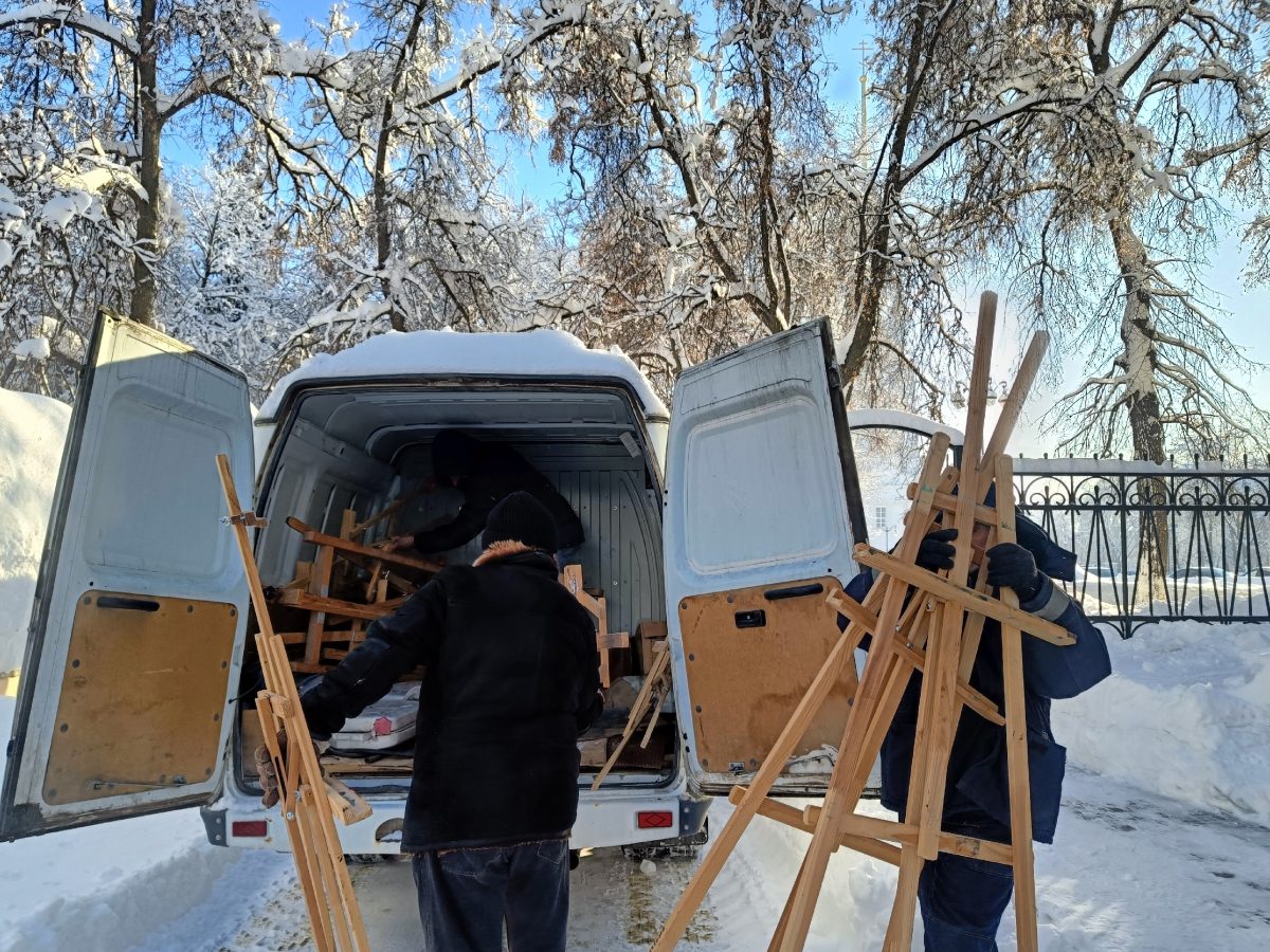 Сегодня сотрудники Пензенской картинной галереи занимались монтажом новой экспозиции, начиная погрузкой мольбертов и заканчивая расстановкой картин.