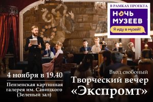 4 НОЯБРЯ В 20:00 ТВОРЧЕСКИЙ ВЕЧЕР "ЭКСПРОМТ" В КАРТИННОЙ ГАЛЕРЕЯ им. САВИЦКОГО в рамках Всероссийской акции "Ночь Музеев 2018"