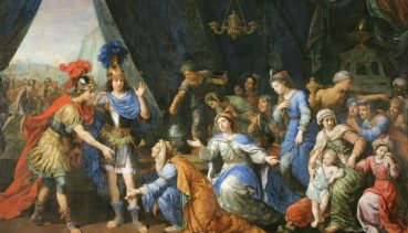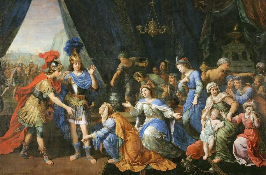 Миньяр был главным придворным живописцем короля Людовика XIV, директором королевских художественных музеев и мануфактур, членом и профессором парижской Академии живописи и скульптуры. Автор многочисленных портретов, мифологических и аллегорических композиций Миньяр воплощал в жизнь официальную концепцию возвеличивания и прославления королевской власти, и в первую очередь, «Короля — солнца». Ему и посвящалось огромное полотно «Великодушие Александра Македонского», хранящееся в Государственном Эрмитаже, в пензенском музее – эскиз к картине. Александр Македонский – один из величайших полководцев Древней Греции предпринял поход против персидской державы Дария III. Решающая битва произошла в 333 году до н.э. у Сирийского города Иссы. Многочисленное войско Дария было разбито, сам царь бежал, бросив свой лук, колесницу и весь обоз, в котором находилась мать Сисигамбида, жена Статира и дочери. Увидев колесницу и лук царя, попавшие в плен женщины зарыдали, но Александр велел сообщить им, что Дарий жив, а царская семья не только не лишится положенных почестей, но ей будет предоставлено все то, чем она пользовалась раньше. Этот сюжет привлек внимание Пьера Миньяра. Идея картины классическая – героика и великодушие, но взята она с целью прославить монарха, в данном случае Людовика XIV. Написанная в традициях «большого стиля», как пышное театрализованное действие, картина полностью соответствовала великолепию дворцовых интерьеров.