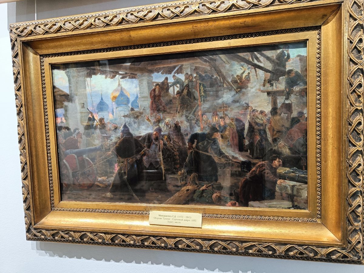 Учащиеся получили поистине уникальную возможность не просто изучить, а буквально ощутить ключевые моменты прошлого нашей страны через призму изобразительного искусства. Особое внимание было уделено детальному рассмотрению картины «Оборона Троице-Сергиевой лавры». Это произведение служит мощным и ярким символом несгибаемой стойкости, непоколебимого духа и невероятного единства русского народа в периоды борьбы с иностранными захватчиками и напоминает о важности сплочения в трудные времена.