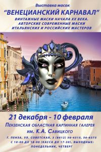 Дорогие друзья! 21 декабря с 15-00 в Губернаторском доме, вниманию посетителей будет представлена выставка «Венецианский карнавал»!