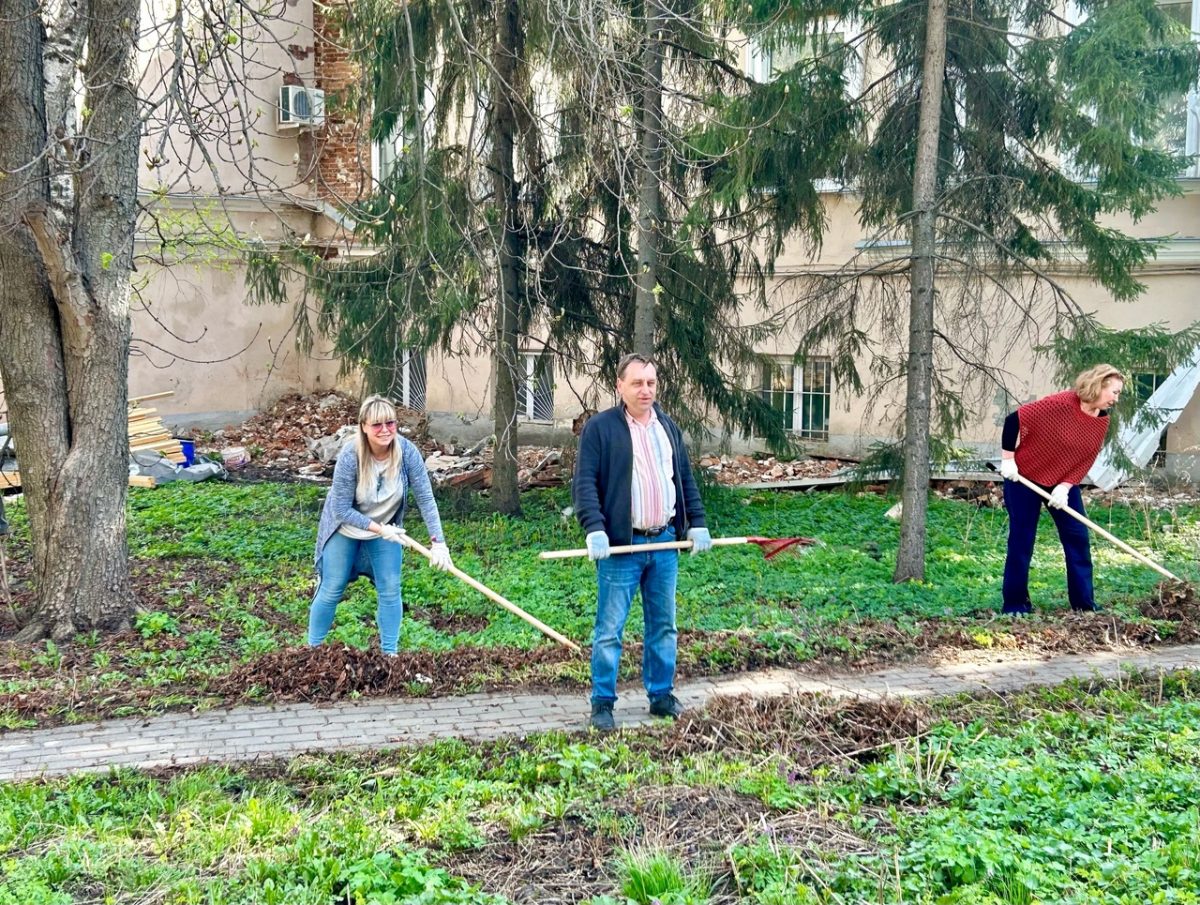 Сегодня, до начала рабочего дня, сотрудники Пензенской областной картинной галереи им. К. А. Савицкого продолжили приводить территорию учреждения в порядок.
