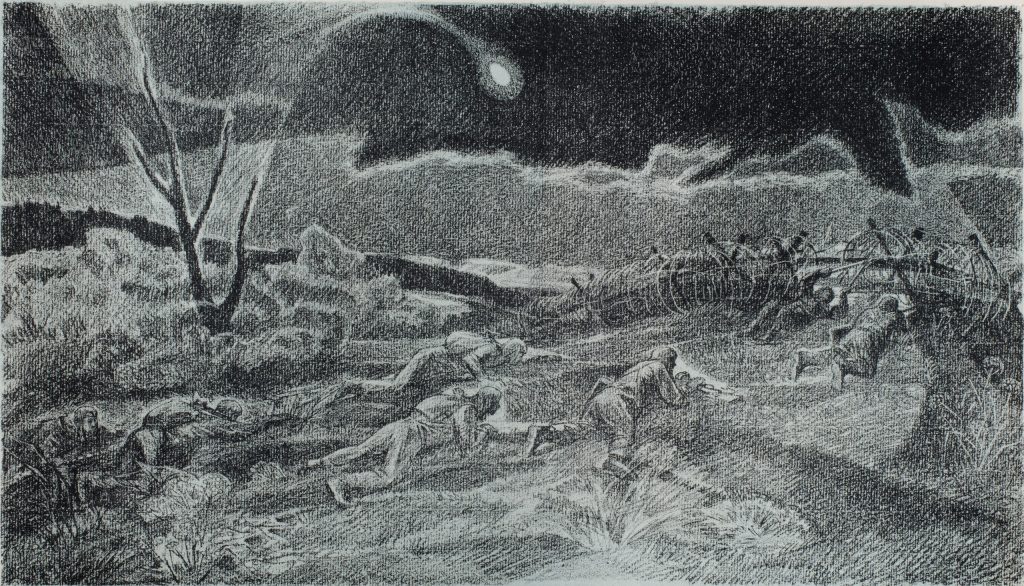 Стихи К. Симонова работа И. Бруни «На ничейной земле» из фондов Пензенской областной картинной галереи им. К.А. Савицкого.
