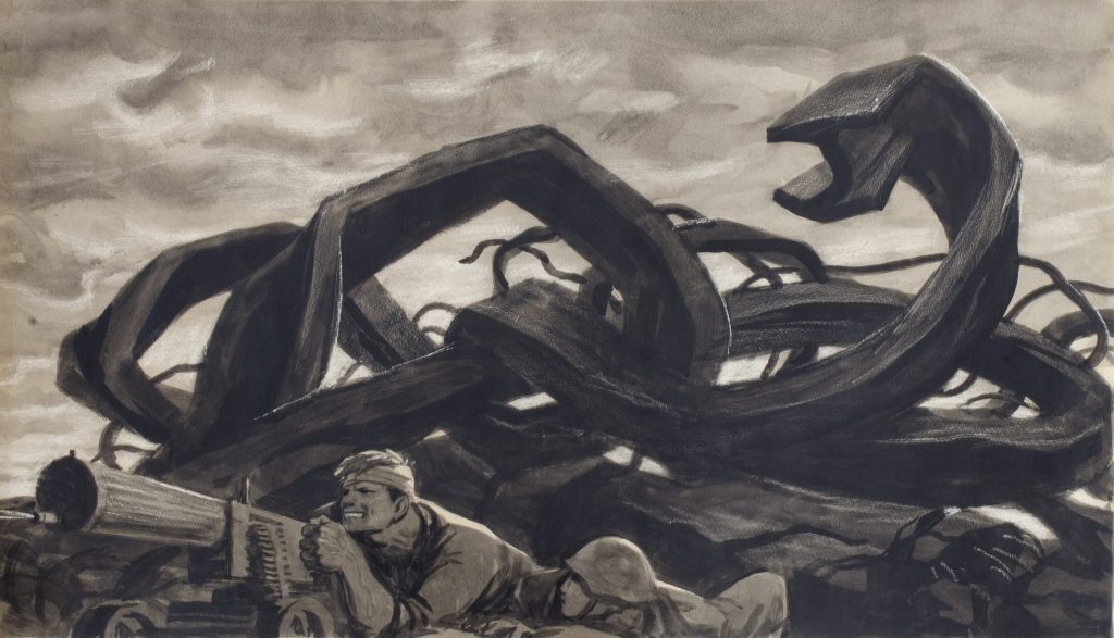 Работа из фондов Пензенской областной картинной галереи им. К.А. Савицкого Альфреда Альфредовича Оя «Не пройдешь!» Стихи Алексея Суркова