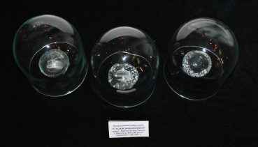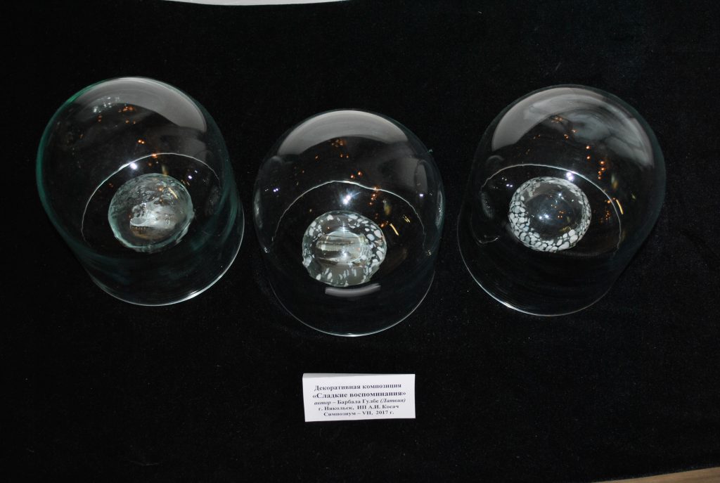 А получилась целая серия работ под названием «Space cookies» («Космическое печенье»), в которую вошли целых пять декоративных композиций: «Русские зайчики», «Играющие собачки», «Пряники», «Пакет из самолёта» и «Сладкие воспоминания». На все эти задумки её натолкнул обычный пряник из продуктового набора, который ей дали в самолёте. Вот что значит фантазия художника! Эти композиции теперь хранятся в Музее стекла и хрусталя.