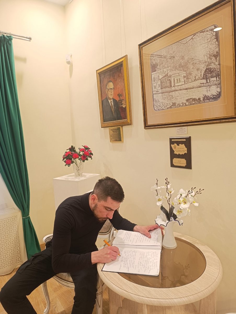 Посещение включало в себя просмотр панорамного фильма «Кисть и меч», который позволил посетителям детально изучить историю создания картины и биографию выдающегося мастера, и встречу с монументальным полотном Владимира Серова «Ледовое побоище».