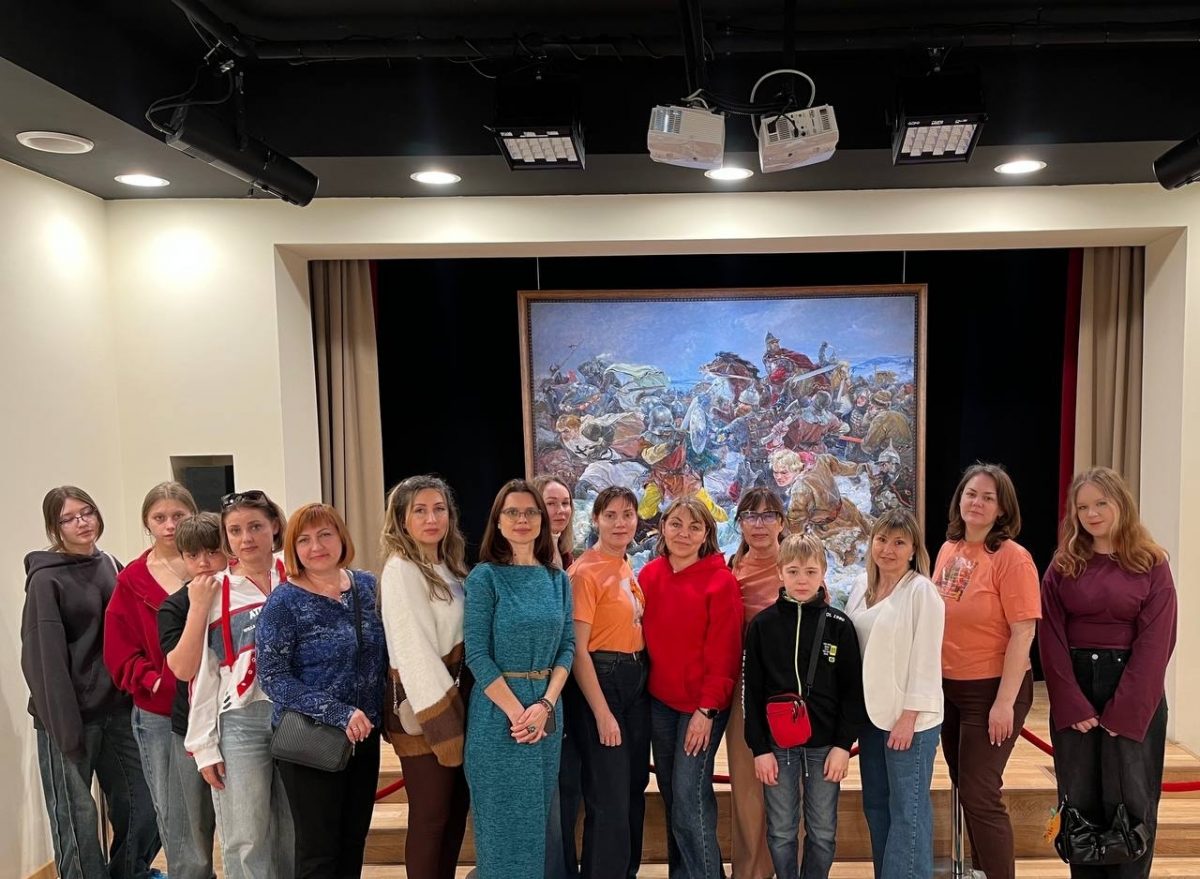 Гости из Белгородской области погрузились в искусство через монументальное полотно Владимира Серова «Ледовое побоище». Уникальный формат нашего музея позволил посетителям не просто увидеть картину, но и узнать больше о жизни и творчестве художника, а также прожить историю великого подвига благодаря панорамному фильму «Кисть и меч» 🎬🛡