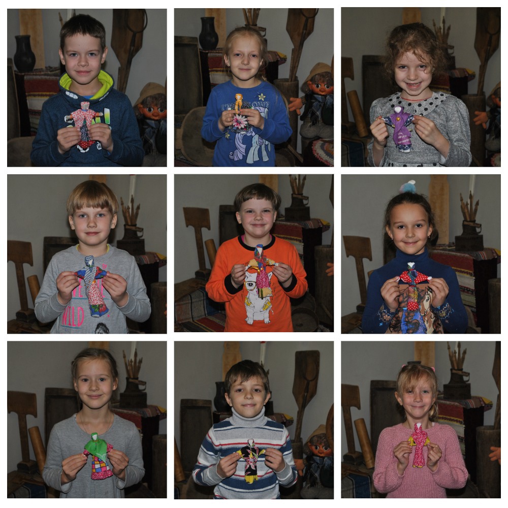 «Без иглы шита, руками увита», — так говорили в старину наши прабабушки и с удовольствием крутили себе тряпичных кукол. Для чего она нужна? Как она выглядит? Как ее скрутить? Многие дети «Школы радости» впервые увидели эту народную игрушку –самоделку и захотели попробовать ее сделать. Сколько для этого нужно терпения, умения и желания! Старались все и каждый ушел из музея со своей заветной обережной куколкой.