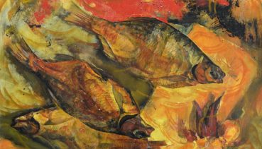 🖼Егидис Александр Менделевич (1932-2003). Натюрморт с рыбами (Золото). 1974.