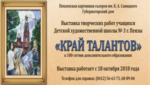 Пензенская картинная галерея приглашает на открытие выставки творческих работ учащихся ДХШ№3 г.Пензы «Край талантов» к 100-летию дополнительного образования.