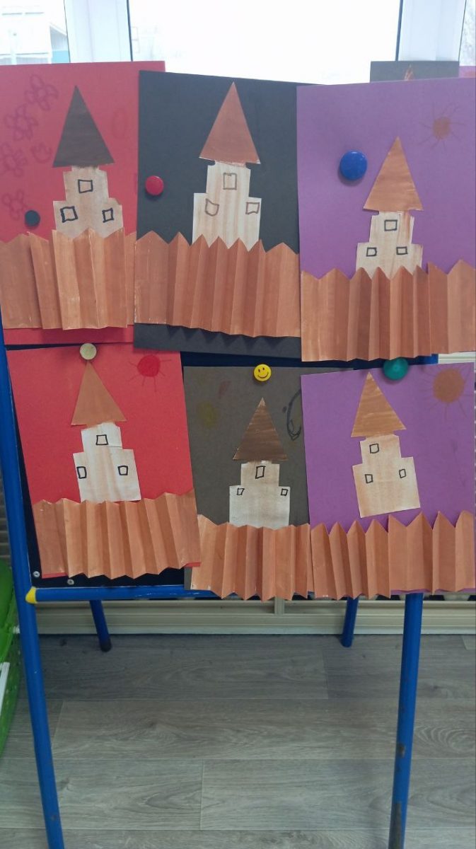 А после познавательной части дети приступили к делу! На мастер-классе ребята с энтузиазмом взялись за цветную бумагу и фломастеры, чтобы изобразить свою собственную крепость! В результате получились яркие и полные детской фантазии аппликации!