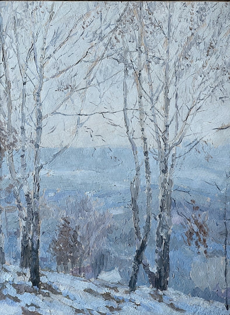 Представляем вам стихотворение Федора Тютчева «Чародейкою Зимою…» и живопись Михаила Валукина «Этюд. Зимний день» (1950-1960 гг. Картон, масло, 34х27) из фондов Пензенской картинной галереи!
