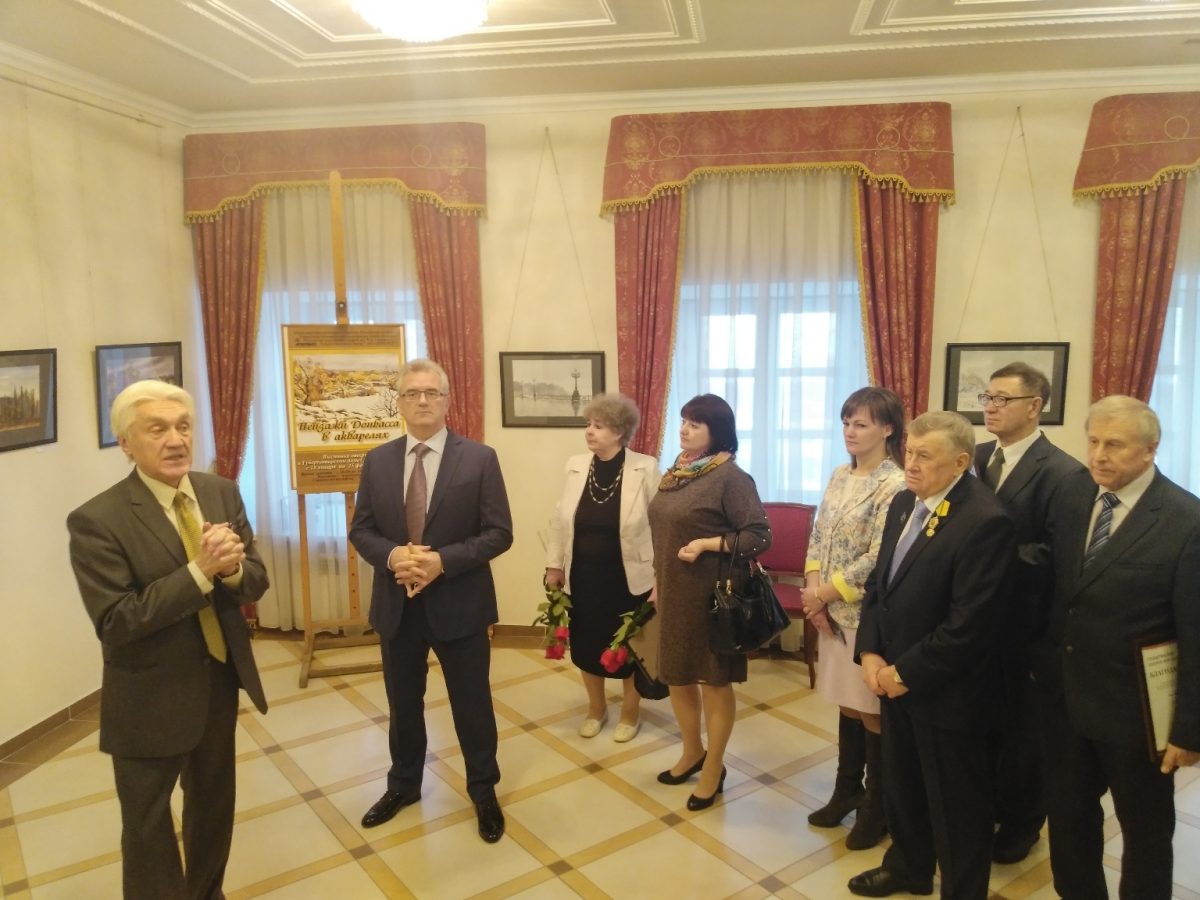 После торжественной церемонии вручения государственных и региональных наград губернатор Пензенской области И.А.Белозерцев вместе с участниками награждения осмотрели действующие выставки Губернаторского дома. Директор Пензенской картинной галереи К.В.Застрожный рассказал собравшимся про уникальную экспозицию «Возрождённых шедевров», показал интересные и яркие «Пейзажи Донбасса в акварелях», а также освятил готовящуюся выставку к юбилею области.