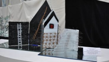 Прошедший VIII Международный симпозиум по художественному стеклу и скульптуре в Никольске был ознаменован созданием множества работ в технике «фьюзинг». В переводе на русский язык это слово означает «спекание». Художник в своей работе использует небольшие пластинки цветного стекла, которые накладываются друг на друга и при высокой температуре соединяются, образуя интересный красочный эффект. В подобной технике выполнена работа студентки МГХПА им. С.Г.Строганова Анны Загоруйко «Mon Plaisir», которая экспонируется на выставке в Музее стекла и хрусталя.