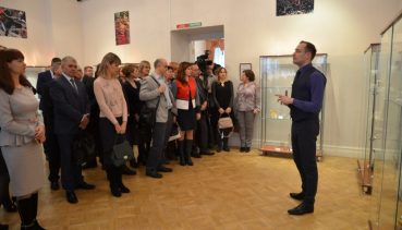 В преддверии Нового года в Губернаторском доме обновилась экспозиция «хрустальной комнаты». Сегодня, 20 декабря, во втором корпусе галереи открылась выставка «Шедевры Никольского стекла». В ходе торжественного открытия перед собравшимися выступил Заместитель Председателя Правительства Пензенской области В.Н.Бесплаов, он отметил уникальность и богатство Никольского музея стекла и хрусталя, а также подчеркнул значимость его коллекции для нашего региона. Директор Пензенской картинной галереи К.В.Застрожный рассказал об особенностях новой выставки и той роли, которую никольские мастера сыграли в развитии отечественного и мирового стеклоделия. После официальной части заведующий отделом современного искусства Д.А.Бушмин провёл обзорную экскурсию по новой экспозиции, где представлено 86 уникальных предметов в технике росписи по стеклу.