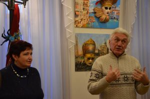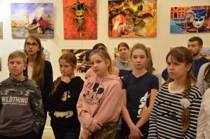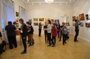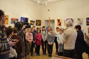 С вступительным словом выступил директор Картинной галереи К.В.Застрожный, рассказав о замечательной выставке. Затем первым гостям выставки, которыми стали педагоги и учащиеся ДХШ №1, Н.В.Санталова – заведующая отделом экспозиции, провела экскурсию.