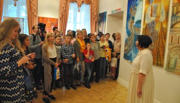 Ярким моментом на церемонии открытия выставки стало выступление студенток Пензенского колледжа искусств, которые исполнили народные песни, созвучные произведениям Татьяны Геннадьевны. В каждом зале царила своя особенная, красочная атмосфера. Татьяна Геннадьевна провела для гостей экскурсию по выставке и рассказала о своем творчестве.