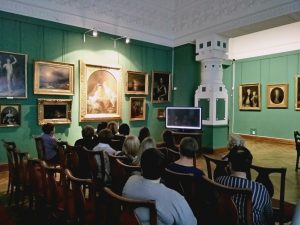 Сегодня, 26 сентября, в Пензенской картинной галерее им. К.А.Савицкого для гостей музея прошел сеанс показа фильма "Портрета милые черты" о картине И.К.Макарова "Девочки-сестры"