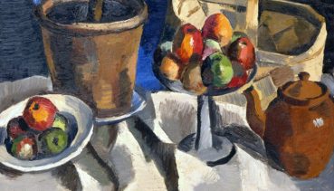 В «Натюрморте с фикусом» видно влияние учителя на Свемпа. Картина, созданная в 19824 году, выполнена ровными, очень густыми мазками, автор лепит форму изображаемых предметов — яблок, цветочного горшка, корзины, глиняного чайника, листья фикуса,- отдавая предпочтение локальному, напряженному цвету, строя его на сильных и ритмических контрастах.