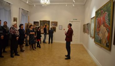 Для собравшихся гостей заведующий отделом современного искусства Д.А.Бушмин провел обзорную экскурсию по экспозиции выставки.
