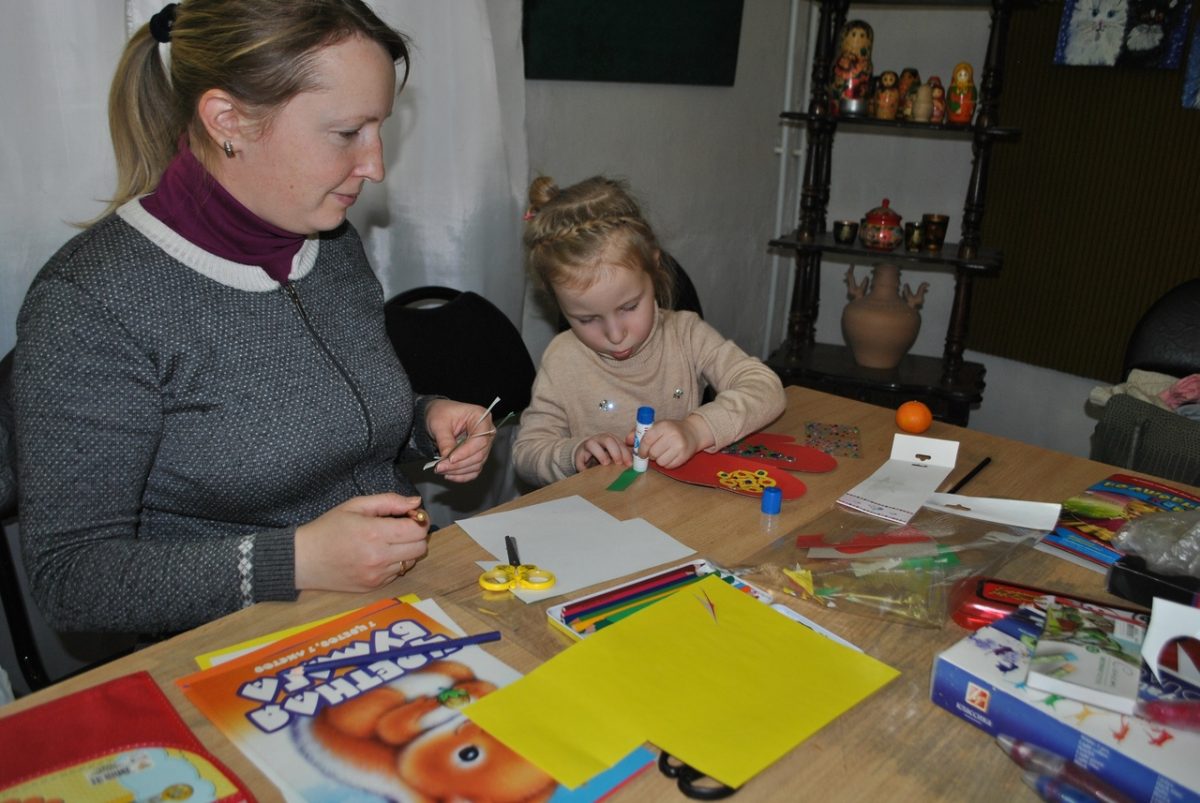 Сегодня дети в старших и младших группах «Школы радости» в технике аппликации создали волшебную рукавичку и избушку Деда Мороза.