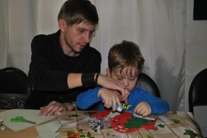 Сегодня дети в старших и младших группах «Школы радости» в технике аппликации создали волшебную рукавичку и избушку Деда Мороза.