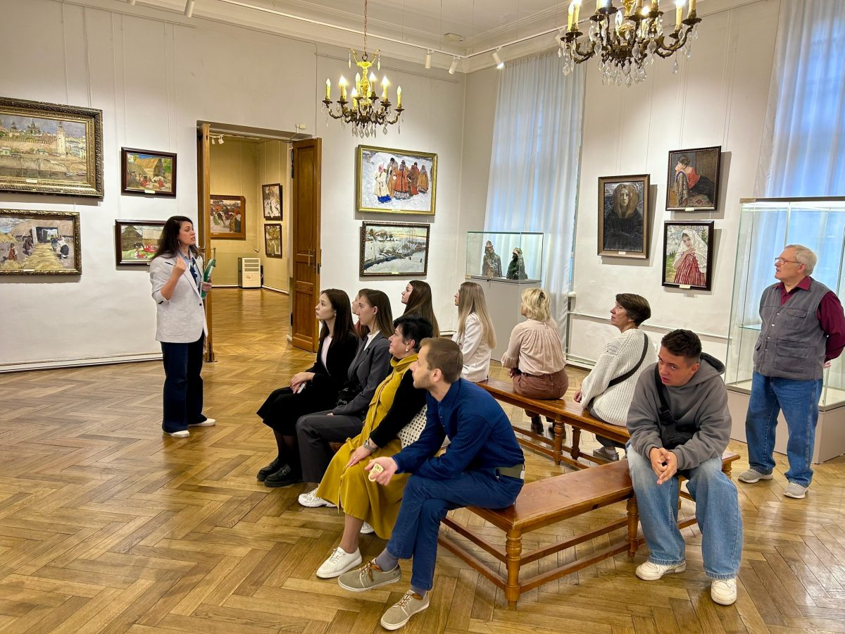 Для них была проведена обзорная экскурсия, в ходе которой они познакомились с произведениями русского искусства XVII–XX вв, с коллекцией картин французских, итальянских, фламандских, голландских, немецких художников XVII–XIX вв, которые представлены в основной экспозиции музея.