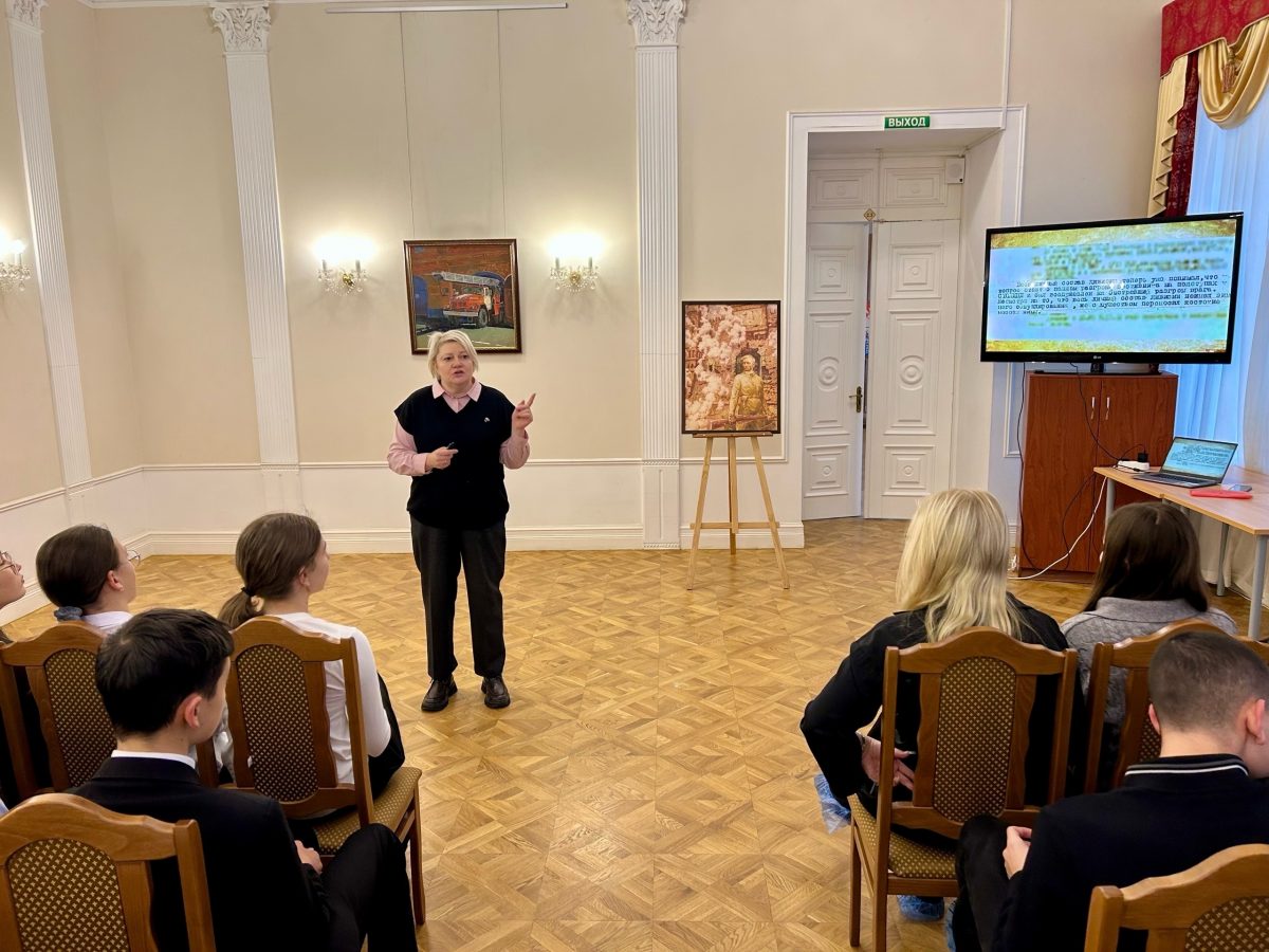 Кроме того, учащиеся смогли познакомиться с посвященным герою полотном Г.В. Жакова «Героический защитник Брестской крепости А.М. Кижеватов», увековечившим его подвиг.