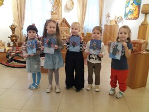 Сегодня медвежонок Тедди пришёл в гости к ребятам, и они нарисовали его пастельными мелками на новогодней открытке.