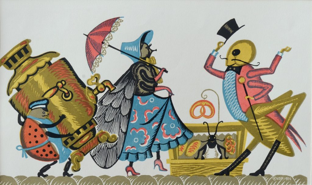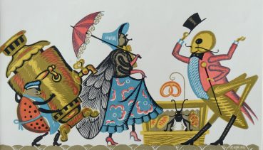 Попов Николай Петрович (1926). Муха-Цокотуха. Бумага, цветная линогравюра. 32х48,3 см.