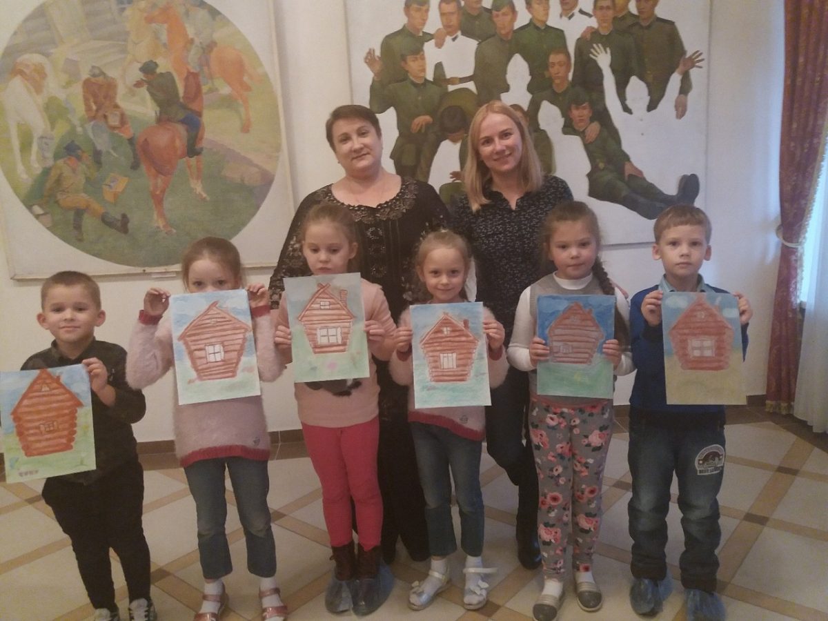 Сегодня на занятии в Школе радости с нашими старшими учениками мы начали большой цикл занятий «В гостях у прабабушки и прадедушки». Мы отправились в прошлое на машине времени и попали в старинную русскую деревню. Ребята узнали, что люди там живут в деревянных домах, которые называются избами. Изба поразила нас своей красотой. Мы любовались круто выгнутыми шеями коней на крышах, резными причелинами, наличниками, полотенцами и серёжками. Узнали, что каждый узор имеет своё значение и защищает дом от всего плохого. А потом пастельными мелками и сангиной мы нарисовали нашу красавицу избу.