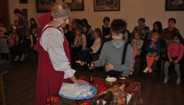 Традиционно первое занятие в новом году в семейной студии эстетического развития «Школа радости» проводится в виде праздника. Сегодня наши воспитанники стали героями фольклорного праздника «Святочные вечера». Они узнали об истории возникновения Святок, традициях святочных гуляний с участием колядовщиков и ряженых. Наши гости смогли не только увидеть старинные обряды, колядование, деревенские девичьи гадания, но и сами принимали участие в народных играх и святочных потехах. А еще ребята так веселились, что разбудили настоящую огуменницу Пензенской картинной галереи! Она пришла к нам на праздник, загадывала ребятам и их родителям хитрые загадки и пообещала всем счастья в новом году! Праздник не только принёс радость нашим детям, но и дал им возможность прикоснуться к традициям и обычаям народа, самим прочувствовать всю прелесть народных празднеств и гуляний. Ребята получили положительные эмоции и заряд радости на целый день. Каждый унес домой массу радостных впечатлений!