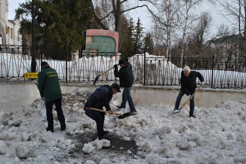 Апрель радует нас весенним солнечным настроением. Постепенно наступает долгожданное тепло, но ещё остается много сугробов и снега, наследства ушедшей зимы. Сегодня утром мужская часть коллектива Пензенской картинной галереи начало с уборки и разрыхления снежных залежей. Очень скоро, когда снег сойдёт, территория музея превратится в уютный цветущий уголок в самом центре города.