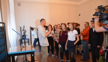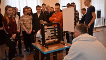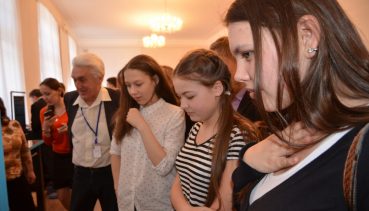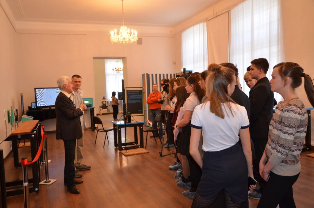 Первыми посетителями стали учащиеся из 7 класса гимназии №4 «Ступени». Гостей приветствовал директор Картинной галереи К.В.Застрожный, а затем экскурсию по невероятным экспонатам провел организатор выставки и создатель проекта и самих экспонатов Н.И.Бутонов.