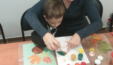 На прошлом занятии с нашими маленькими учениками студии Школа радости мы познакомились с Шуршиками. А вот сегодня в гости к нам пришли другие сказочные существа – Осенники. Всё лето они трудятся над созданием уникальных красок, а с приходом осени окрашивают листья на деревьях в разные цвета. Вместе с ребятами мы посмотрели про них мультфильм «Сказка про чужие краски», а потом мы создавали замечательный осенний натюрморт в технике монотипии. Отпечатки мы делали не только с осенних листочков, но и с маленьких яблочек. Вот такие вкусные и красивые натюрморты у нас получились.