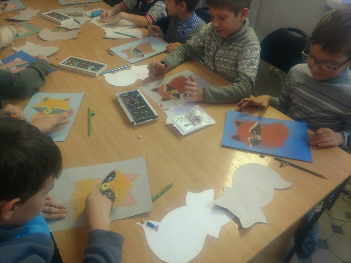 Сегодня в Картинной галерее для ребят из школы №77 и №57 был проведен творческий мастер-класс "Удивительный мир пастели. Рисуем Енота"