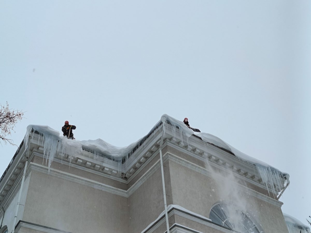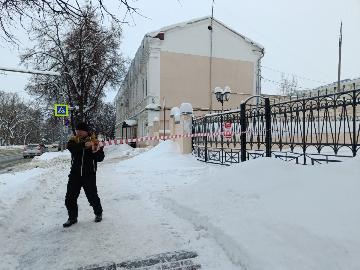 🔝 На высоте альпинисты очищают крыши от снега и сбивают наледь. Чтобы ваш путь вдоль здания был безопасным, специалисты музея заранее огородили опасные участки — пожалуйста, будьте внимательны!🛡