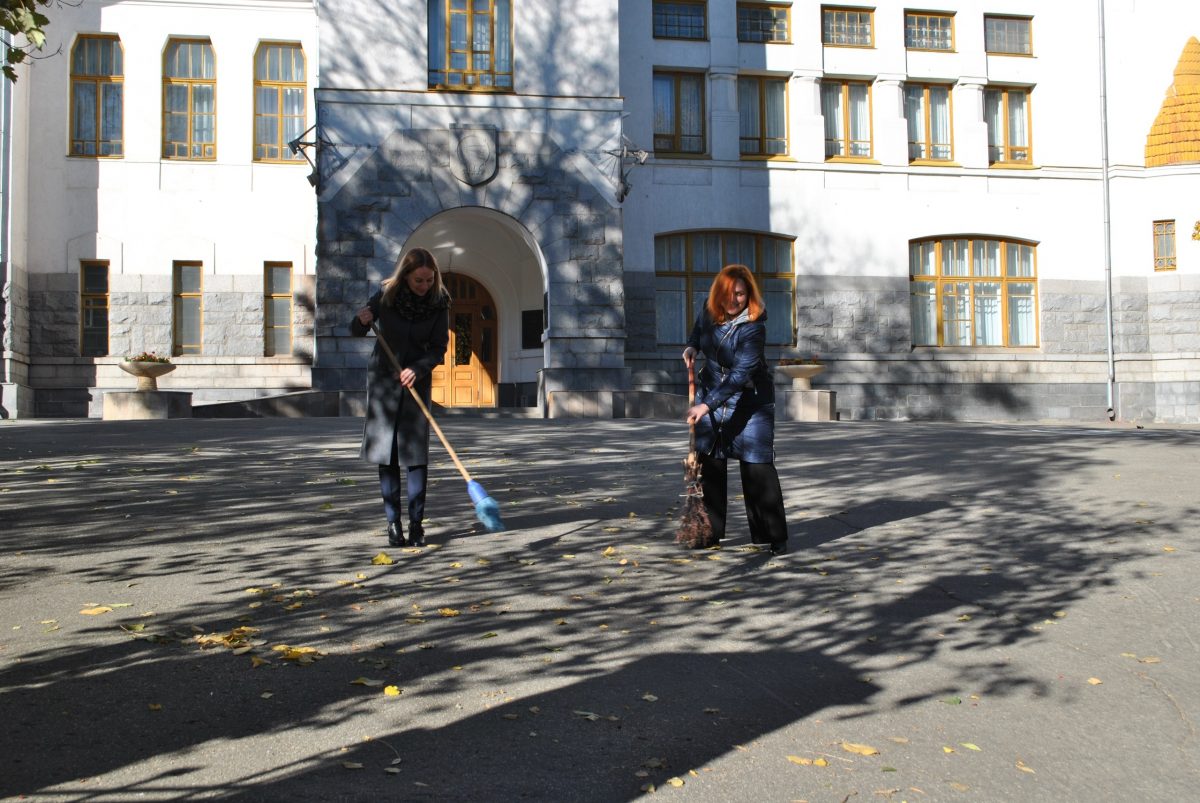 Сегодняшним солнечным осенним днем сотрудники Пензенской картинной галереи им. К.А.Савицкого вышли на санитарную уборку прилегающей к музею территории