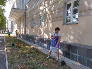 Солнечное осеннее утро в Губернаторском доме началось с работ по благоустройству территории.
