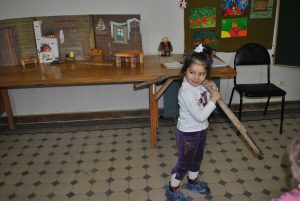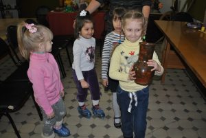 Теплый мир русской деревни. Все деревянное, уютное, сделанное своими руками. Сундуки, хранящие свое нехитрое добро, широкие лавки, прялки, белая красавица печь, рогатый ухват, лопата для хлебов. Все это постепенно уходит в прошлое, становится частью музейных экспозиций. И многие предметы, как, например, коромысло или люлька, нашим детям уже незнакомы… Но очень хочется, чтобы они знали об этом мире, о его обычаях, обрядах. И сегодня мы побывали в русской избе, в гостях у бабушки Маруси и деда Матвея, которые рассказали нам о старине, о том, как хлеба в печь ставили, воду носили, траву косили и как удивительно ладно и складно жили.