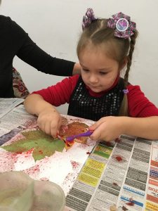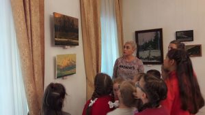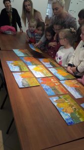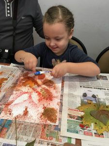 Сегодня, 7 октября, учащиеся Студии «Школа радости» посетили персональную выставку работ А.Головченко. Ребята с большим удовольствием познакомились с экспозицией, где можно воочию убедиться в красоте Сурского края. На работах Алексея Головченко «старая» Пенза, поля, реки, овраги, а главное – «настроение» такой изменчивой во все времена года природы. Но, больше всего нас сегодня интересовали осенние пейзажи: солнечные и теплые, пасмурные и дождливые, ветреные и спокойные. На практической части занятий ребята из младших групп с помощью зубной щетки и акварели создали волшебные осенние букеты. Ребята из старших групп с помощью шпатлевки и гуаши попытались передать пастозную технику Алексея в осенних пейзажах с березками.