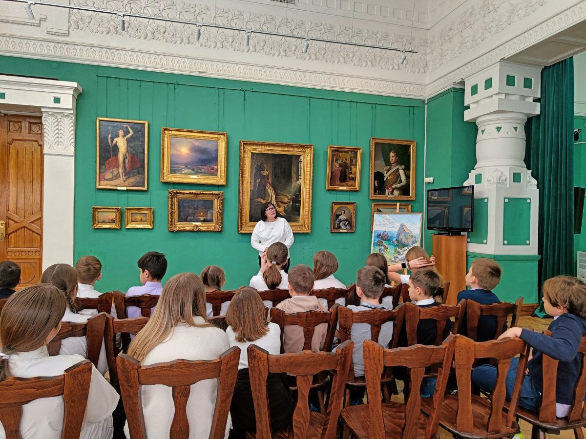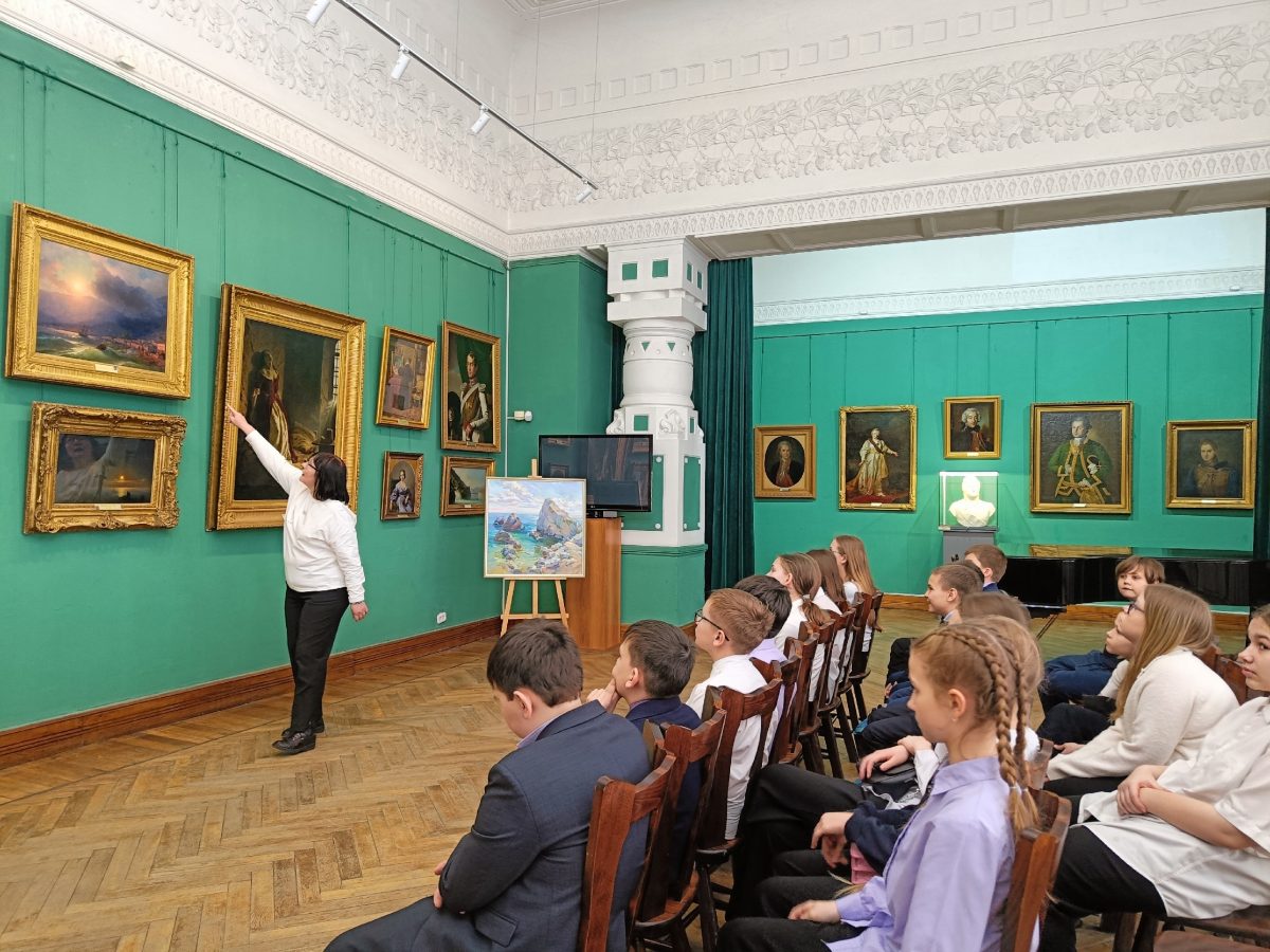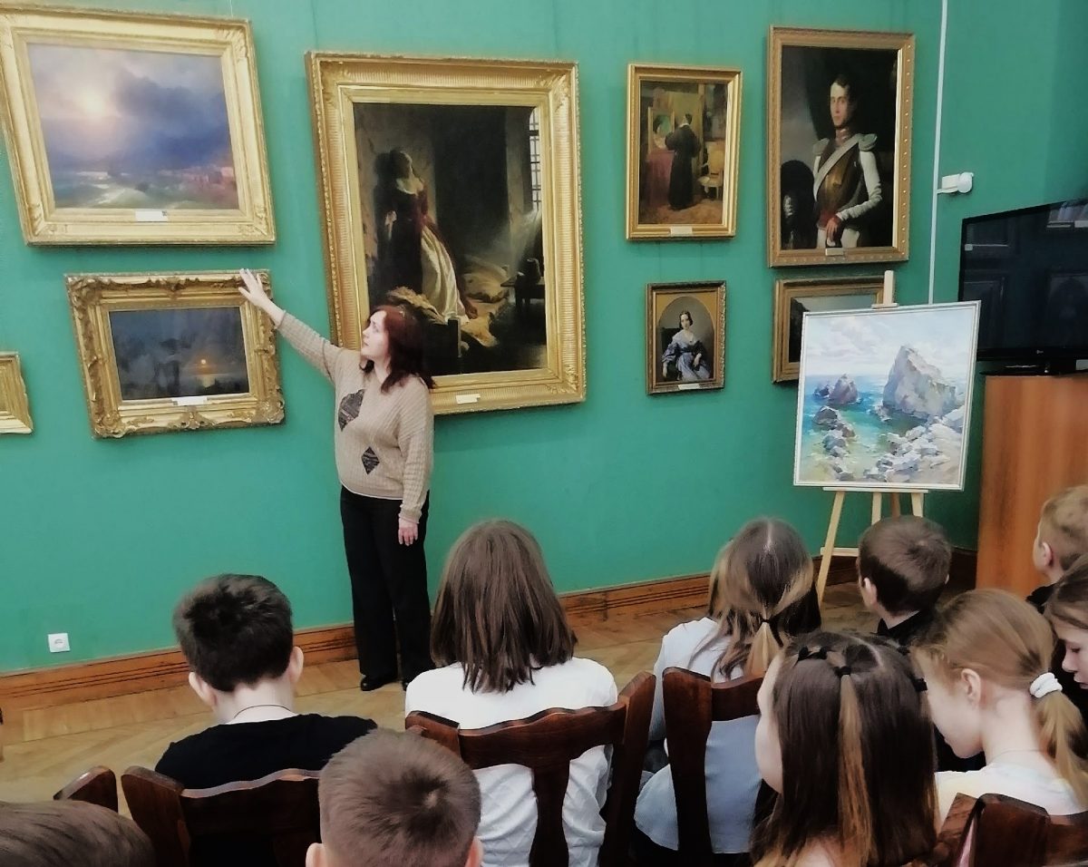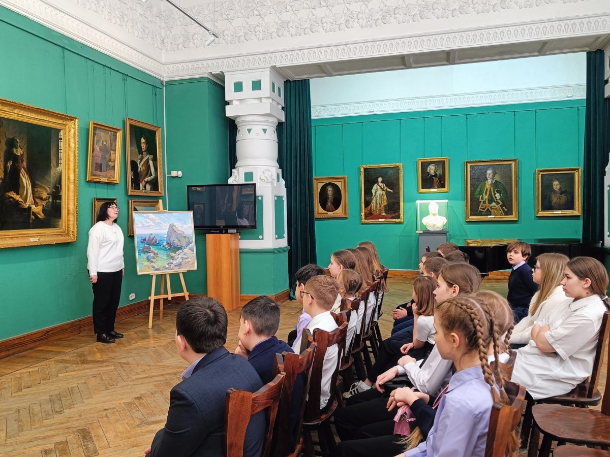 Символично, что в День воссоединения Крыма с Россией центральное место в экскурсии заняли крымские пейзажи. Юные гости увидели полуостров глазами великого Ивана Айвазовского благодаря его картине «Приморский город. Вид Ялты», а также с помощью работы «Батилиман» современной художницы Анастасии Калюжной 🌊🖼