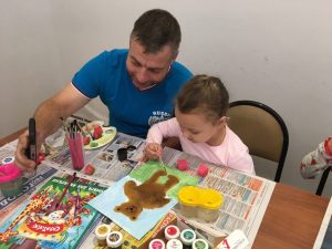У каждого из нас в детстве были любимые игрушки: у кого-то это машина, у кого-то кукла, а у кого-то плюшевый медведь или даже кот. И сегодня на занятиях с младшими группами «Школы радости» мы говорили о любимых игрушках и слушали сказку о приключениях волшебного медвежонка Тедди Брюмма. Затем смогли создать с помощью гуаши и губки веселых пушистых медвежат!