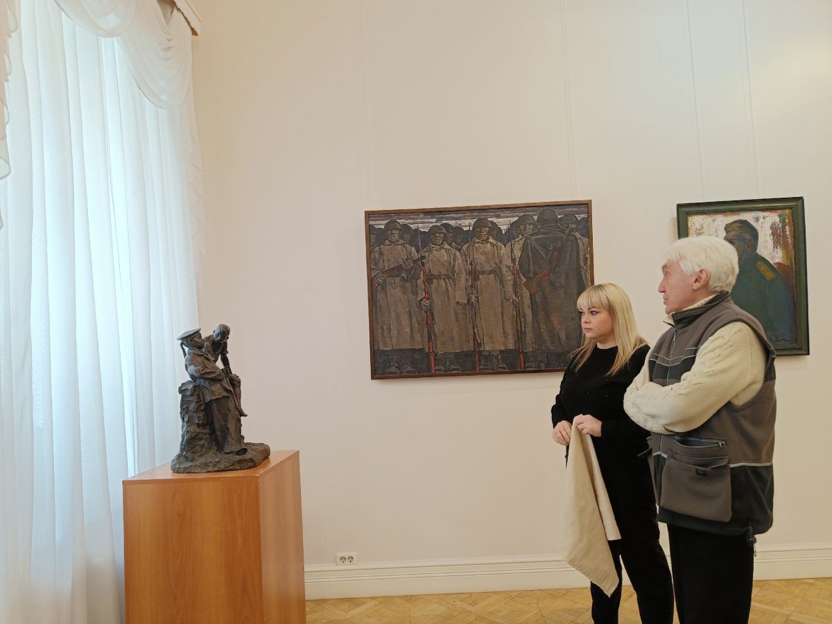 Директор Пензенской картинной галереи Кирилл Владимирович Застрожный совместно со специалистами экспозиционно-выставочного отдела проверили ход работ. В основу выставки легли уникальные полотна из фондов Пензенской картинной галереи, передающие всю мощь и драматизм тех героических лет.