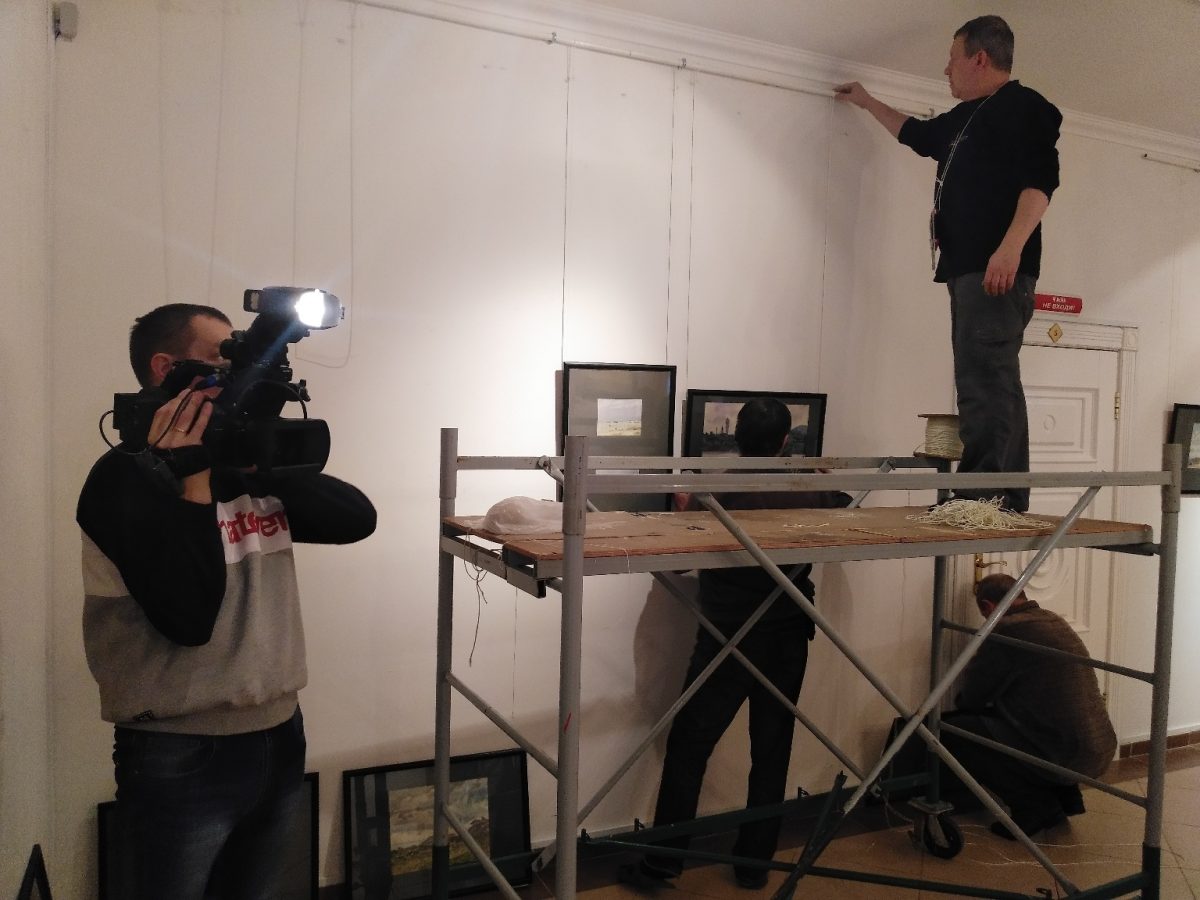 В Губернаторском доме начался монтаж выставки "Пейзажи Донбасса".