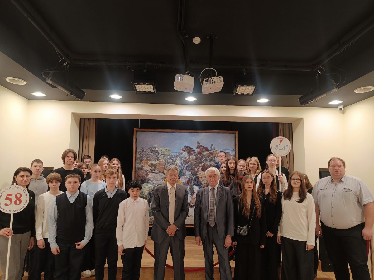 Культурная программа в честь юбилея продолжилась в уникальном Музее одной картины, носящем имя своего основателя. Здесь сын Георга Мясникова, Михаил Мясников, встретился с молодежью: учениками школы №58, активистами «Движения Первых» и участниками отряда «Тигр».