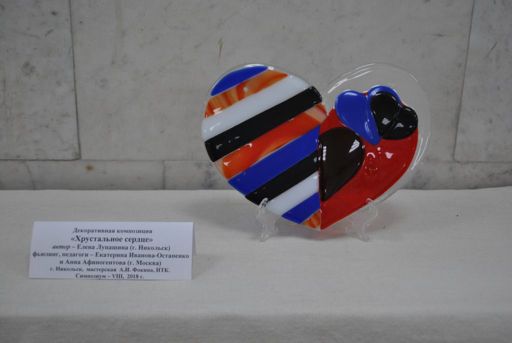 В Музее стекла и хрусталя продолжает свою работу выставка «Симпозиум – 2018». Среди декоративных композиций столичных и зарубежных художников и студентов представлены работы местных учащихся колледжа им А.Д.Оболенского, выполненные во время работы симпозиума в технике «фьюзинг». Ребята впервые участвовали в подобном форуме, но под руководством педагогов из Москвы Екатерины Ивановой- Остапенко и Анны Афиногентовой они вполне справились с заданием и их декоративные композиции выглядят очень выразительно.