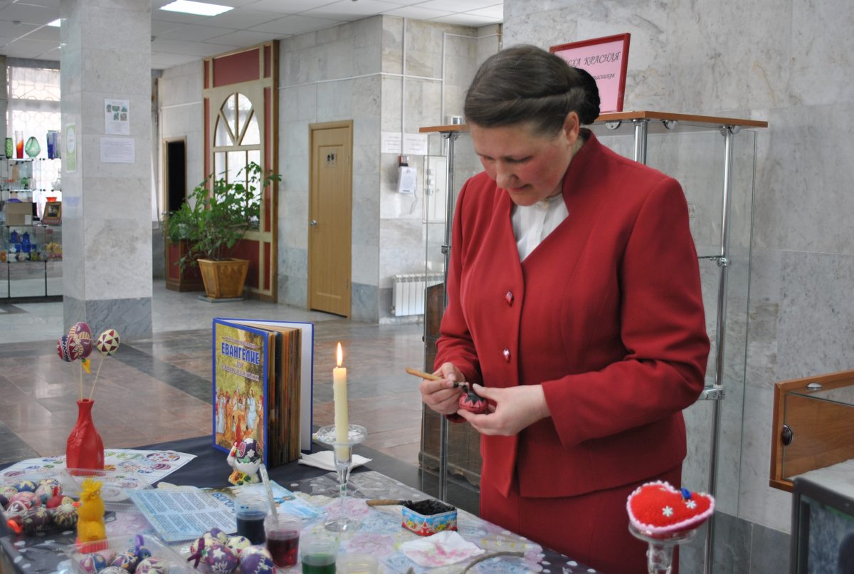 В Музее стекла и хрусталя прошел мастер-класс по украшению пасхальных яиц с помощью воска.